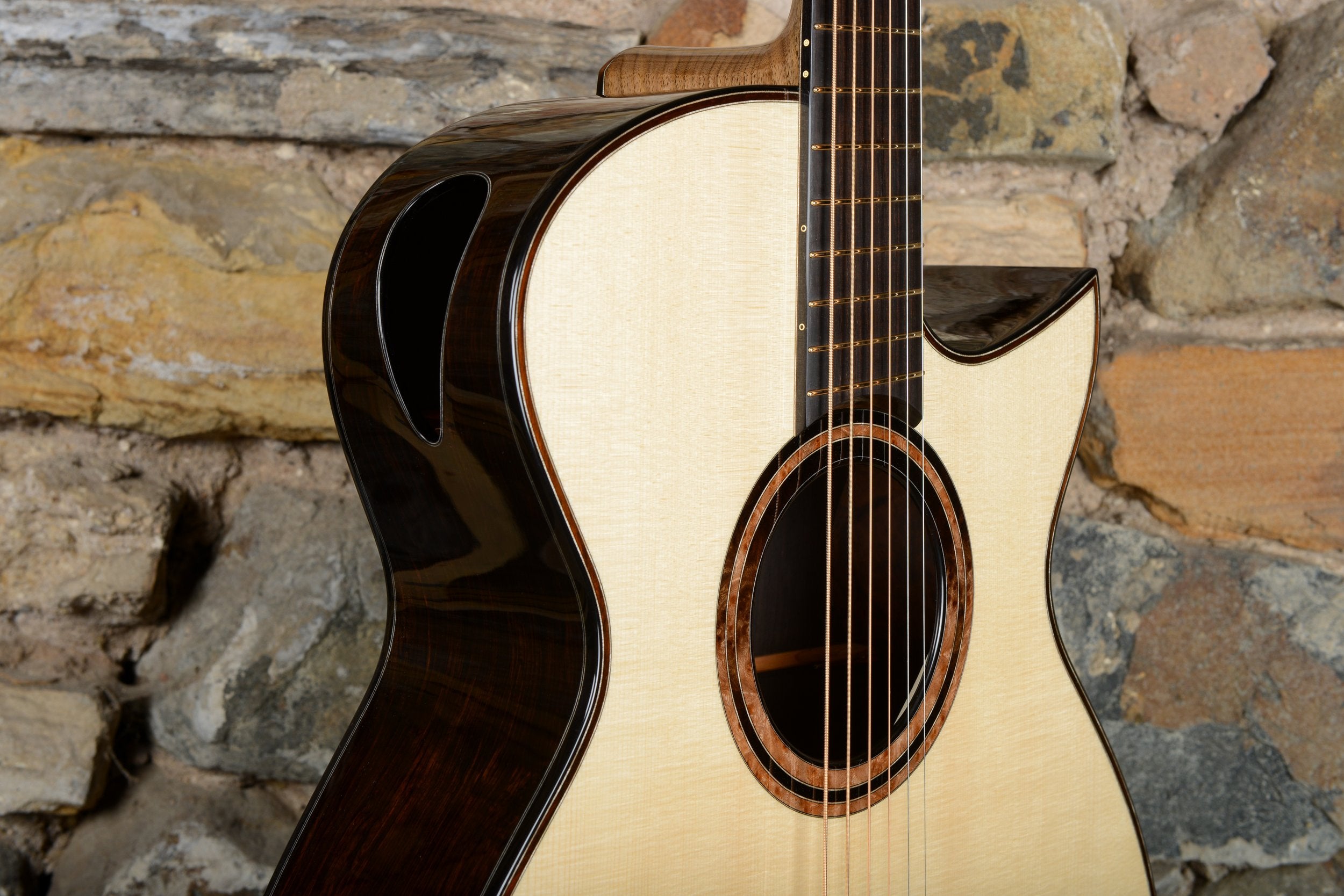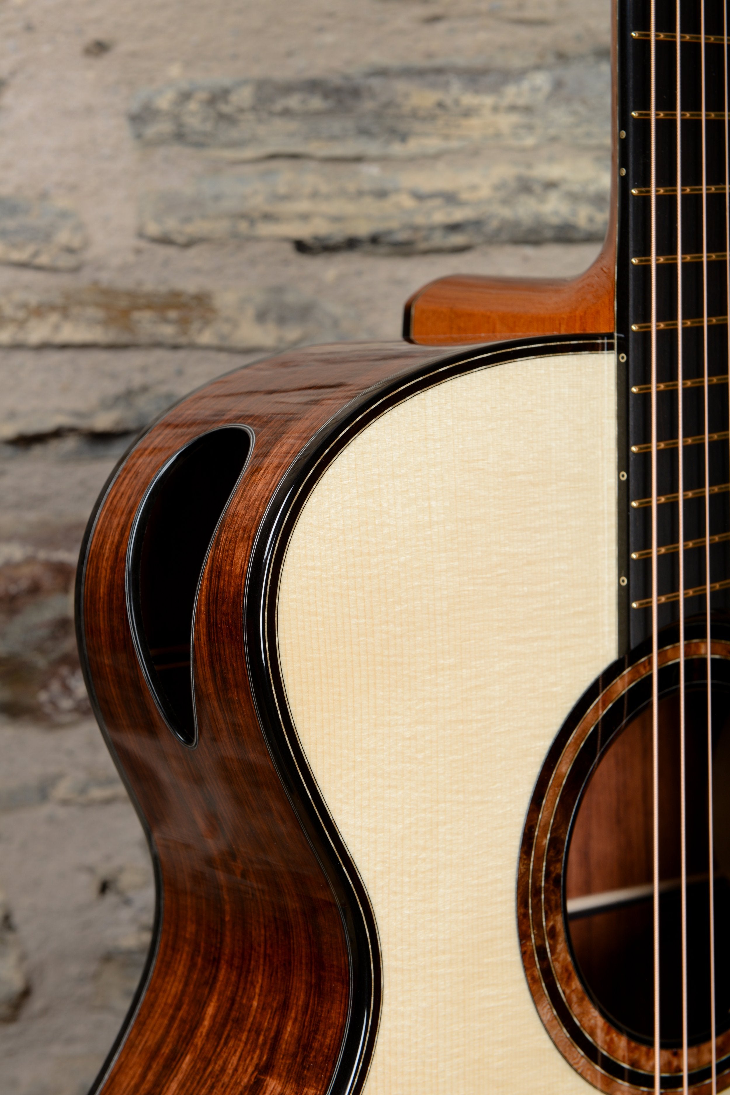 Taran often choose to add a soundport to their guitars, which gives the player some of the great tone that usually only comes from the soundhole out to the listener.
