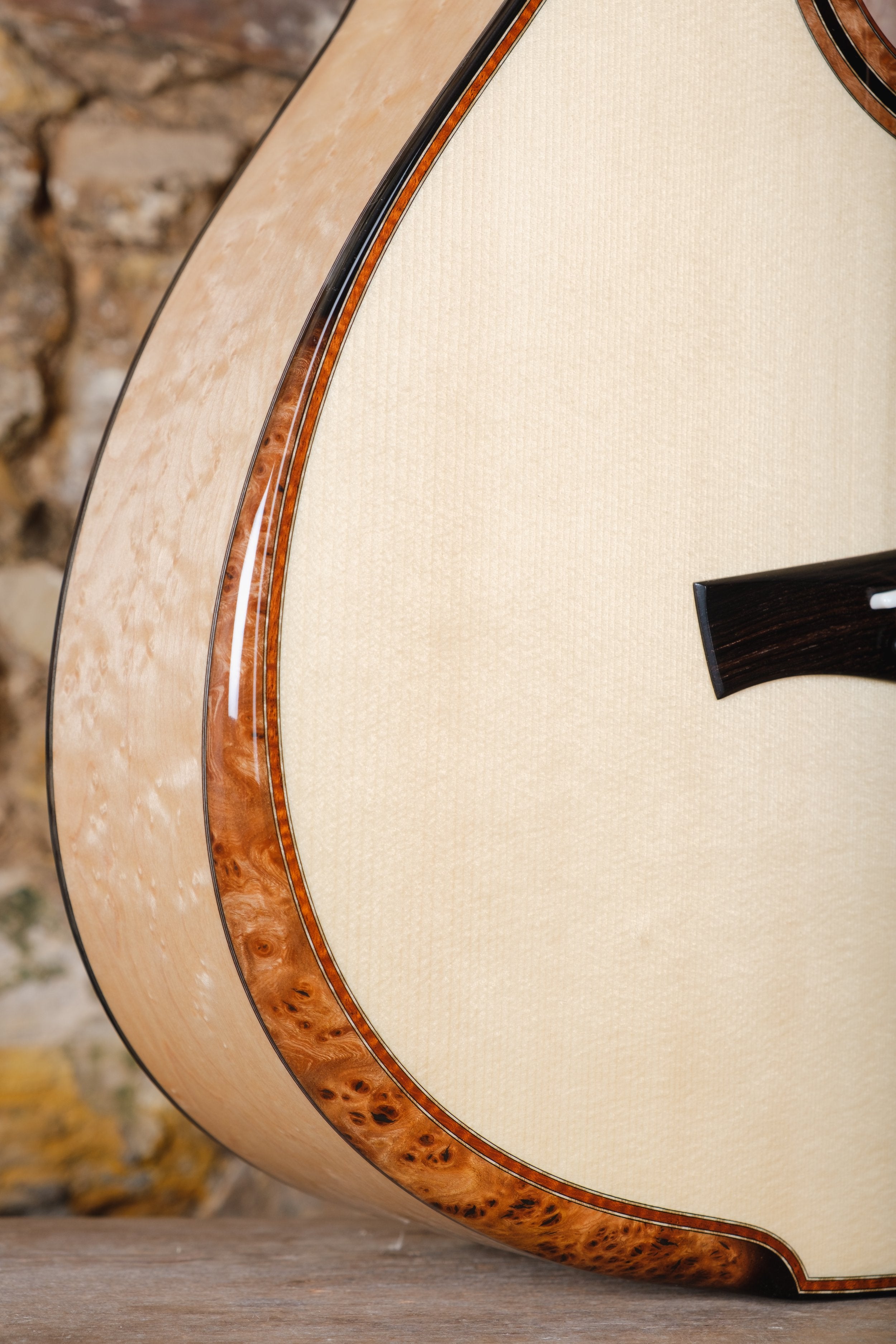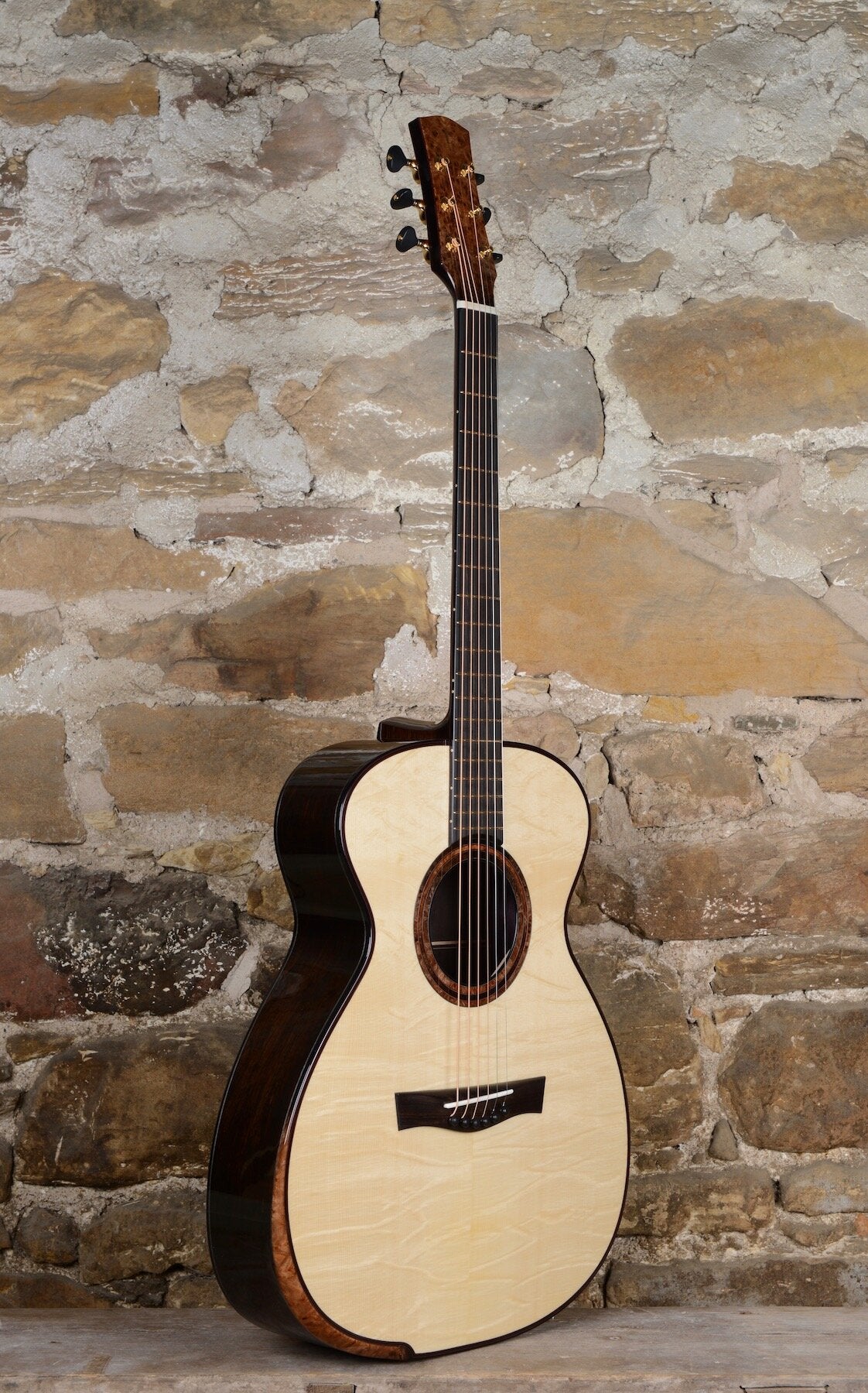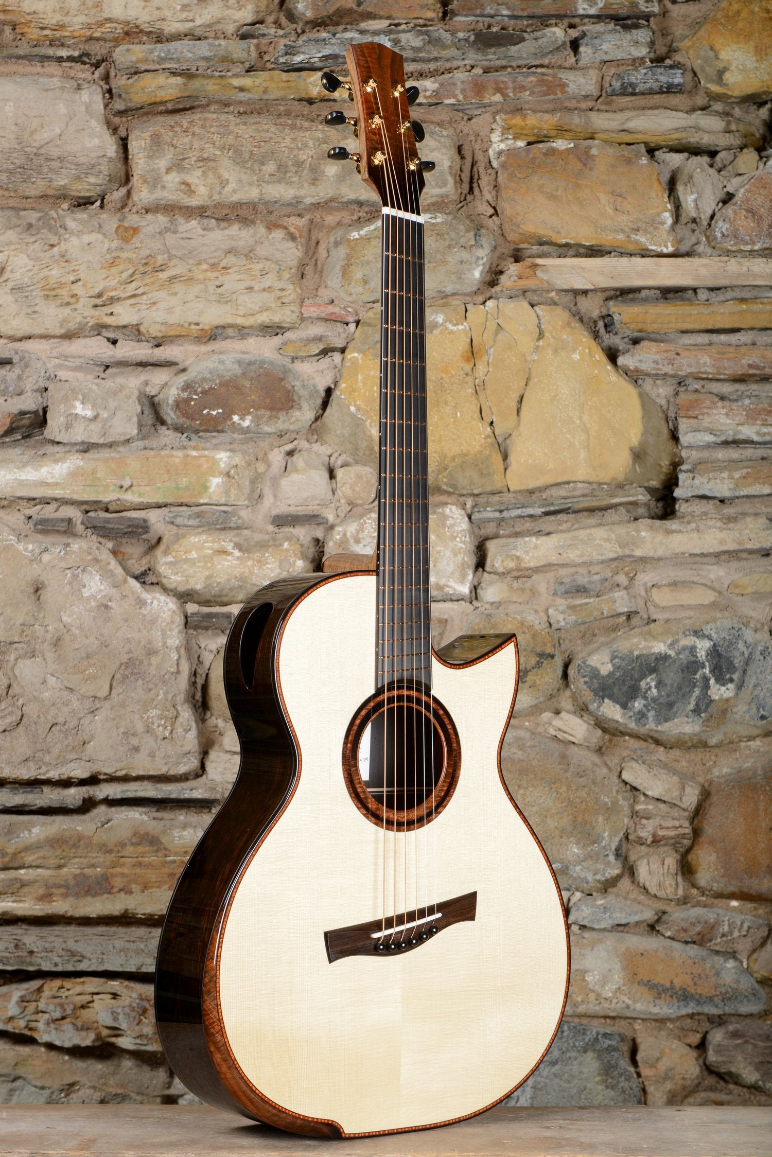 Stripped back detailing gives it an austere, clean and striking look. Its own unique bracing pattern and greater depth give the Oreval a big voice, perfect for noisy sessions. At home, solo, the Oreval offers a large dynamic range.