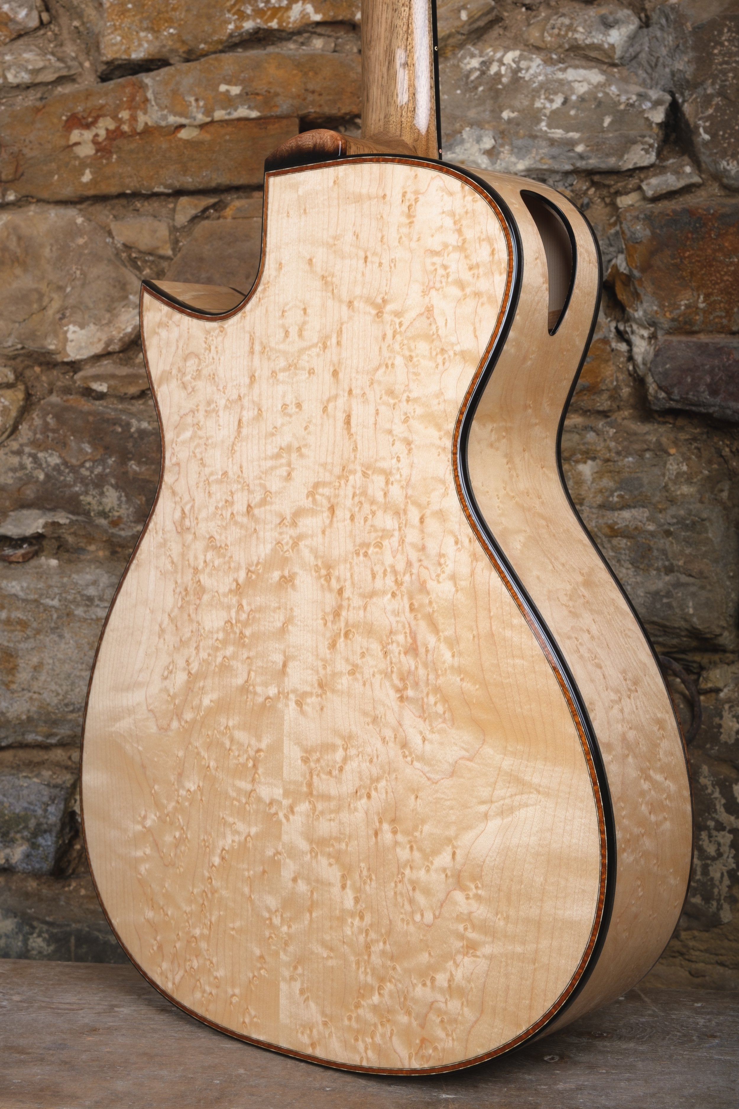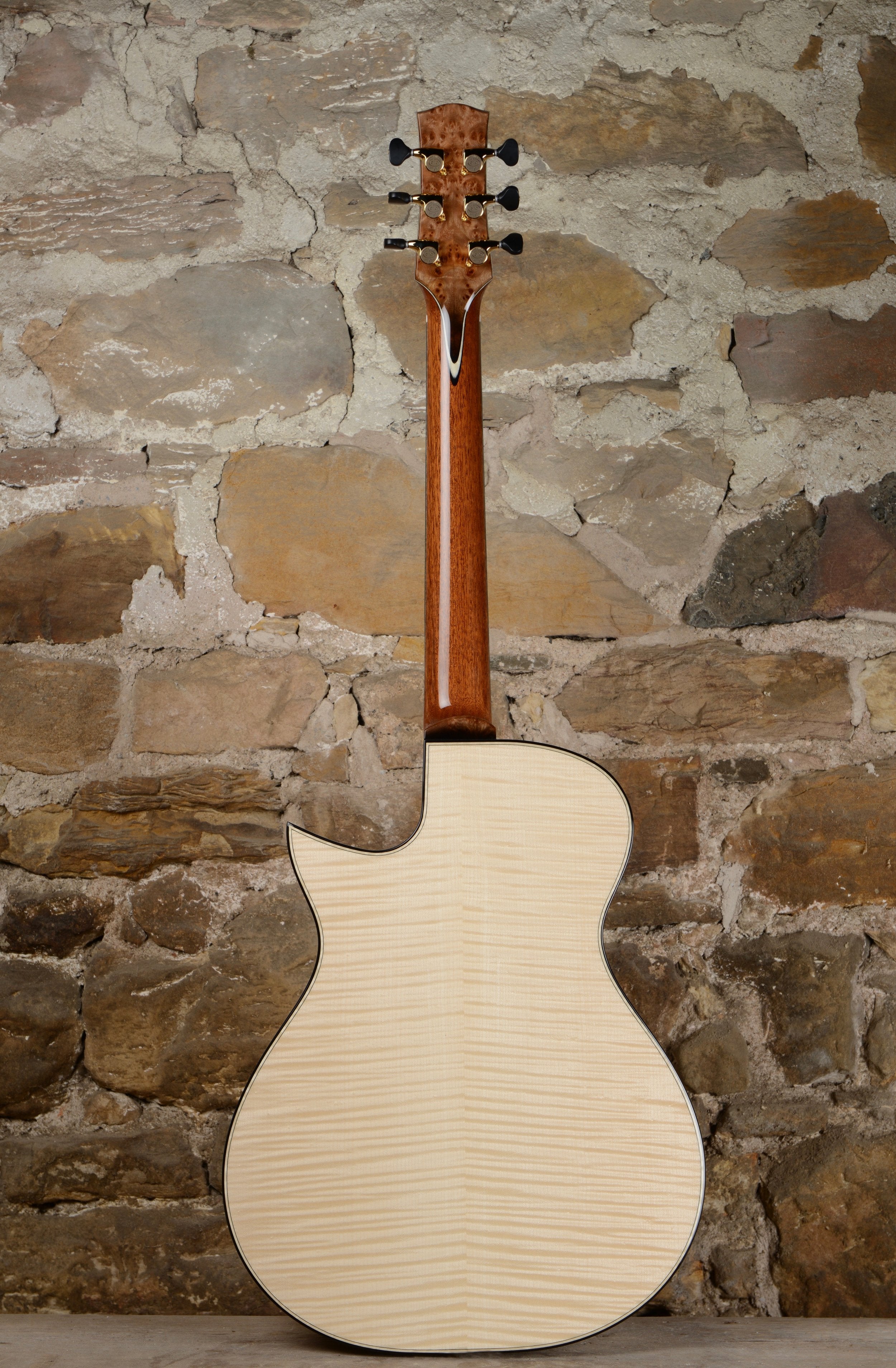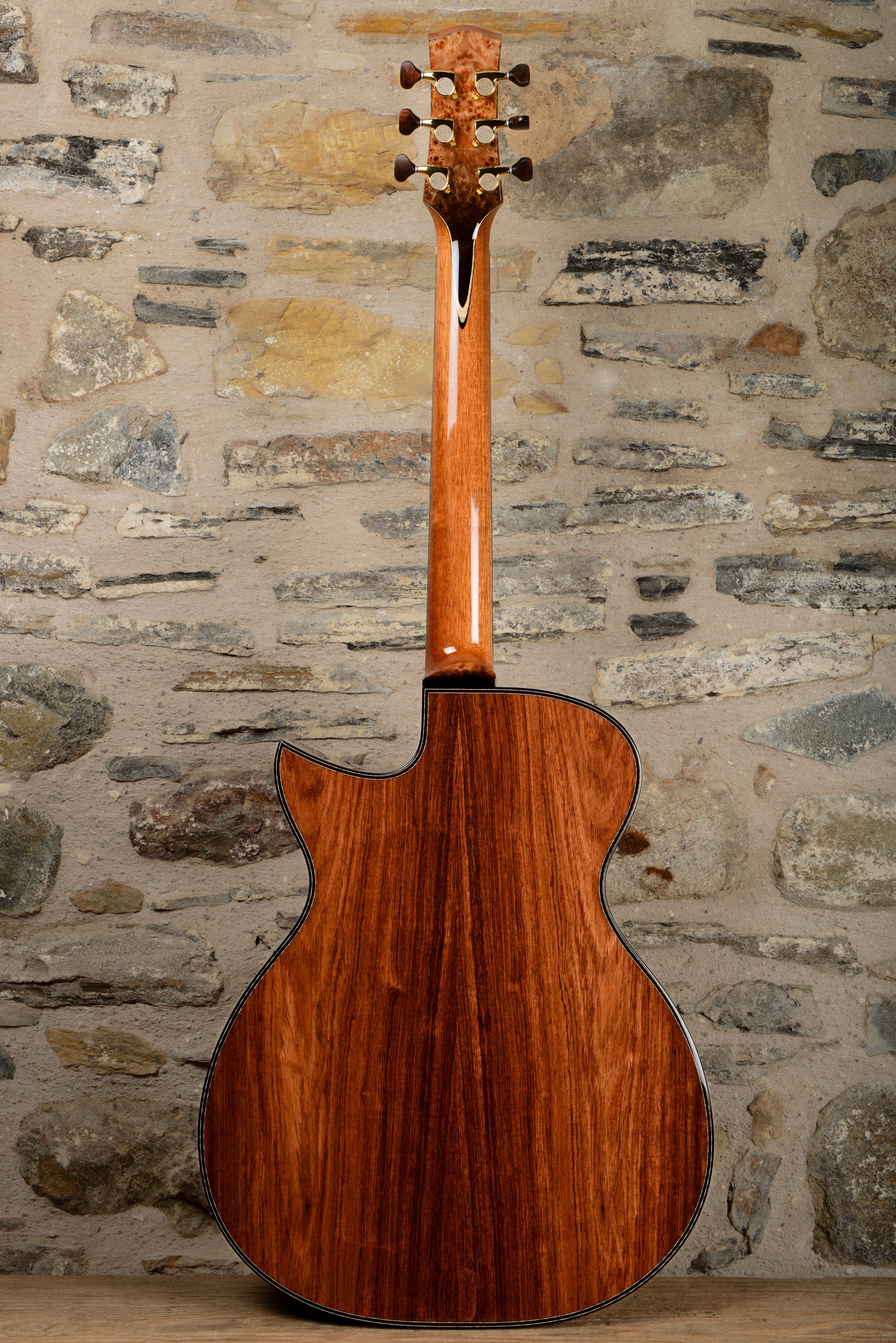 A key feature of any Taran guitar is its cylindrical back, which helps the guitar's projection but also makes the playing experience much more comfortable, giving the illusion that the guitar is shallower than it actually is.