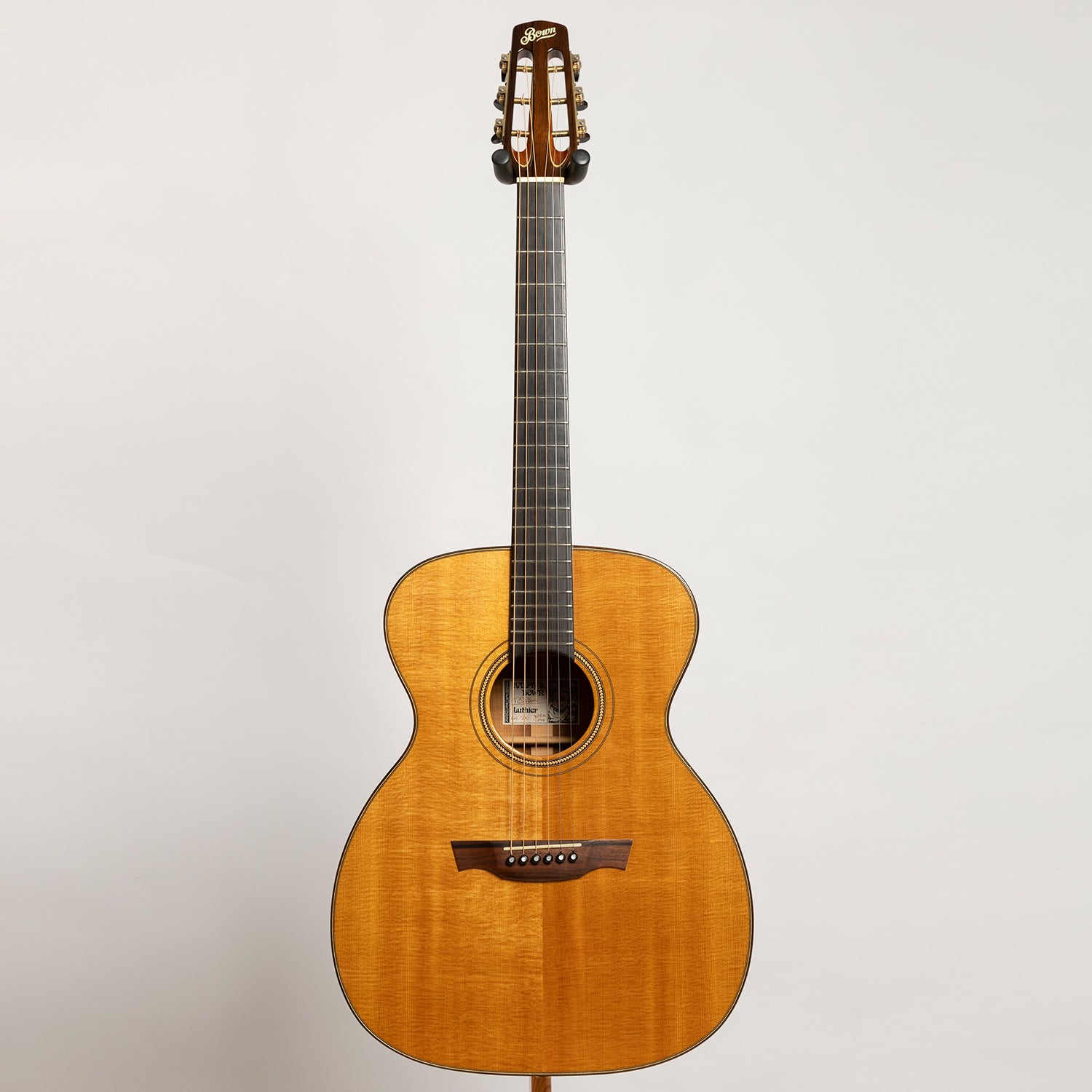 Bown’s guitars are highly sought after by professional musicians and serious enthusiasts alike, earning widespread acclaim for their quality and consistency. Many well-known musicians favour his instruments for their outstanding sound and responsiveness. Bown’s dedication to his craft and his ability to meet the specific needs of individual players have solidified his place as one of the leading guitar makers of the contemporary era.