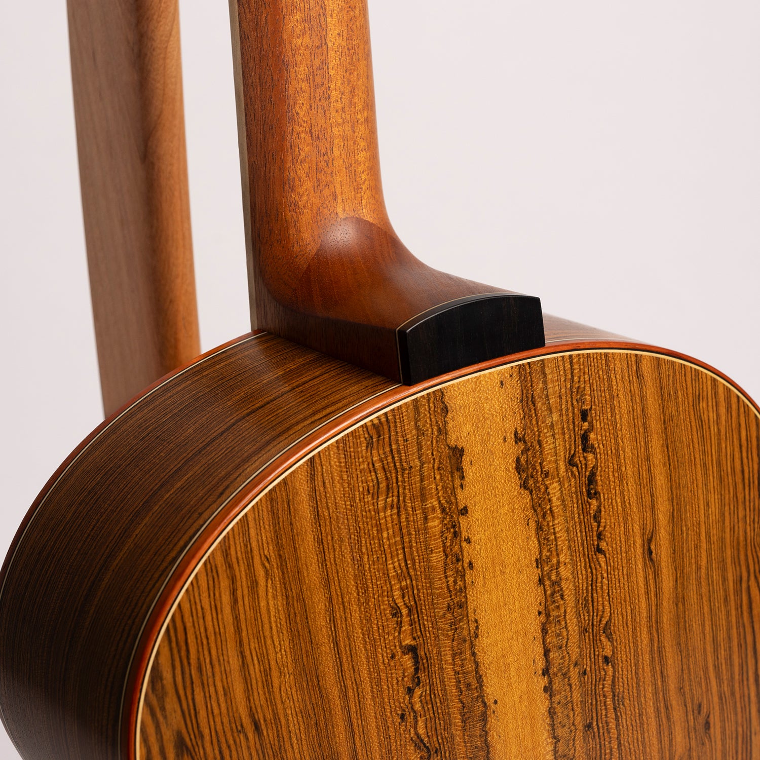 Juuso’s JT-OM is a more modern approach to the OM model, with a deeper body adding more volume, and the combination of a sublime set of bocote for the back and sides paired with a master grade European spruce top provides a balanced tone with a big bass presence.